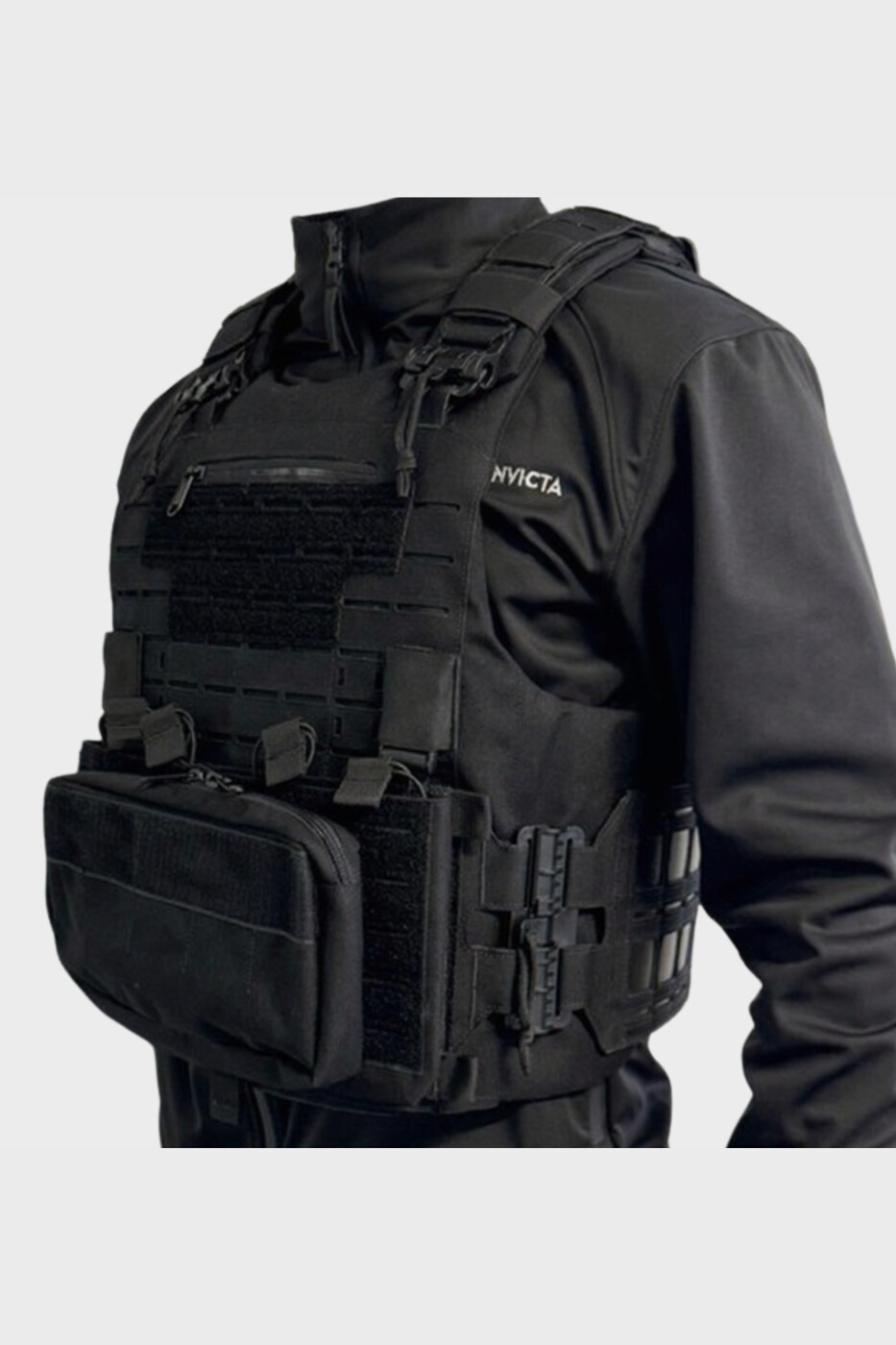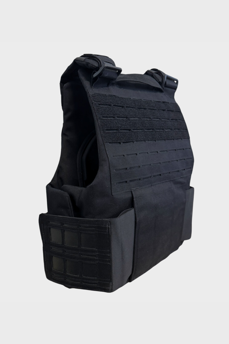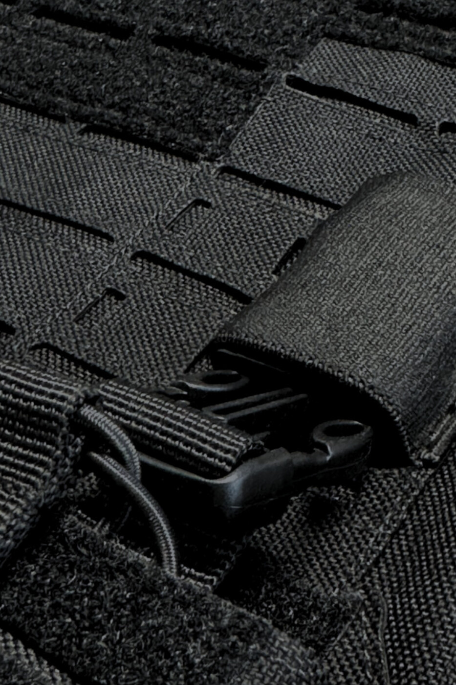 Système Quick Release – passants MOLLE – poignée d’évacuation – jeu de ventipads velcro – cummerbunds élastiques ajourés